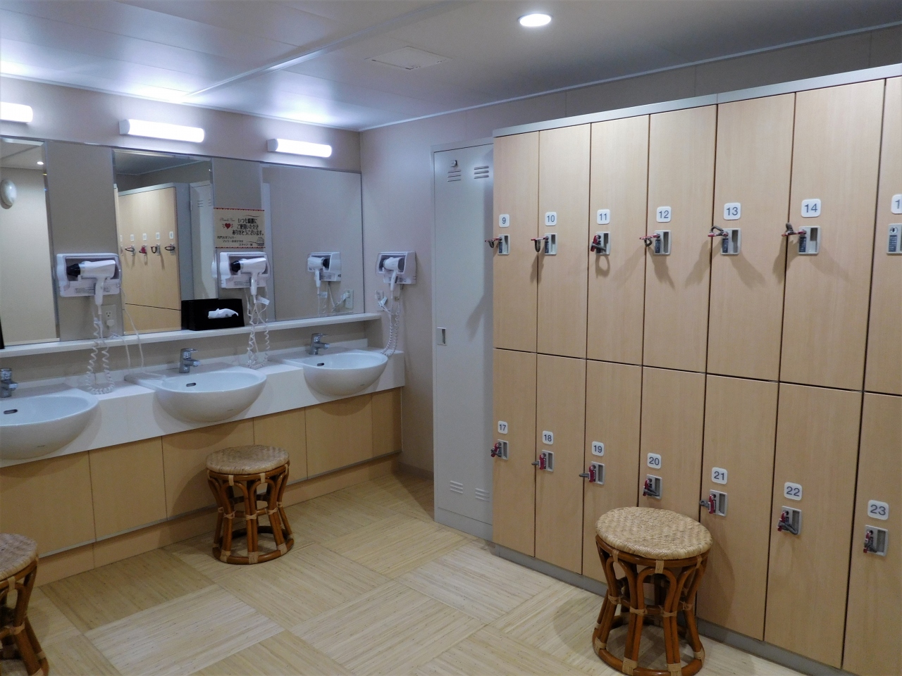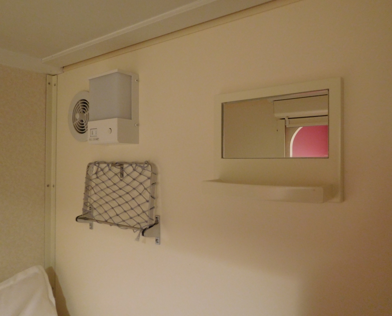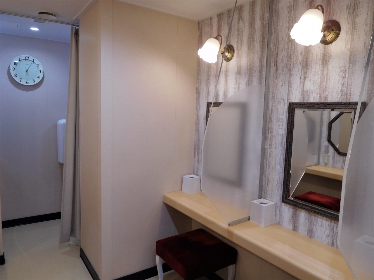 レディースルームではベッドの壁にミラーがありました。入り口には鍵があるので安心です。