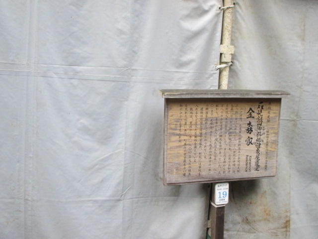 18世紀に大森に設けられた6軒の郷宿の一つで、公用で出かける村役人の指定宿として使われました。1800年の大火で焼失を免れた大森で、最も古い建物の一つということで楽しみにしていたのに、建物全体が工事シートで囲まれて工事中でした。