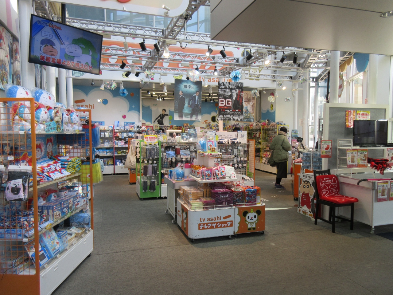 六本木にあるテレビ朝日の1階、写真撮影スポットがあるアトリウムの先にあります。テレビ朝日の番組の中でも人気がある相棒、Doctor-X、BG、ドラえもんなどのクリアファイルや人形、小物雑貨、お菓子などが売られていました。ドラマやアニメが好きな人への、東京土産に手頃かもしれません。平日に訪れたため、店内は空いていました。