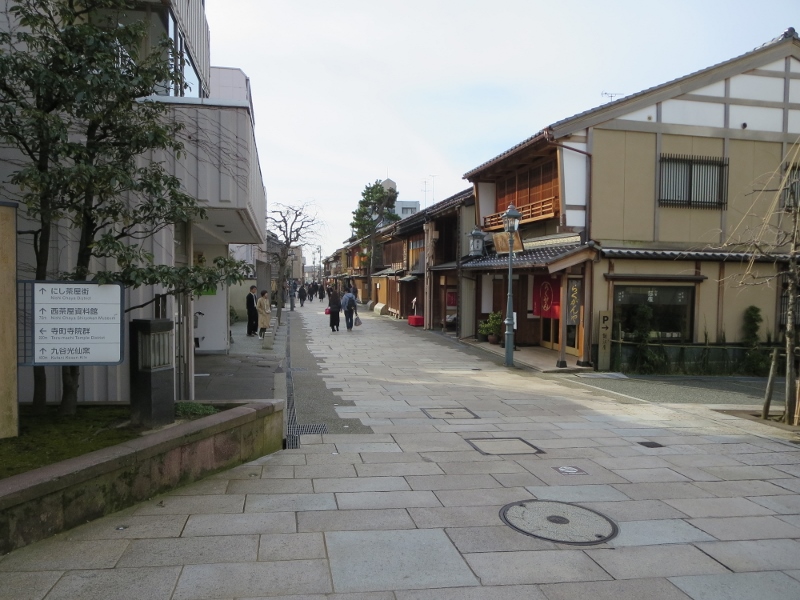 ひがし茶屋街と主計町茶屋街を歩いてから行ったので、金沢の三大茶屋街としてはこじんまりした感じに思いました。昔は賑やかだったようですが、本来の茶屋街と違う雰囲気になってから寂れたそうです。ひがし茶屋街は観光客が多いので、こちらの方が茶屋街の雰囲気を知るには良いかもしれません。