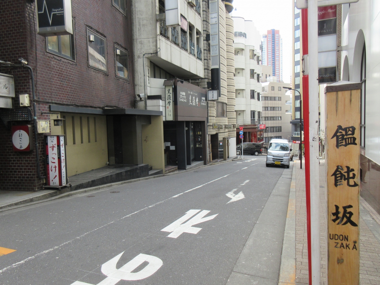 六本木周辺には、寄席坂や芋洗坂、於多福坂などかわった名がついた坂道が多くあります。この坂道もその一つで、六本木交差点から延びる芋洗坂途中にある短い坂道です。江戸時代に松屋伊兵衛といううどん屋があったことから名づけられたそうです。坂道に名がつけられるほどのうどん屋ですから、当時はかなり大きなうどん屋だったのかもしれません。勝手な想像です。