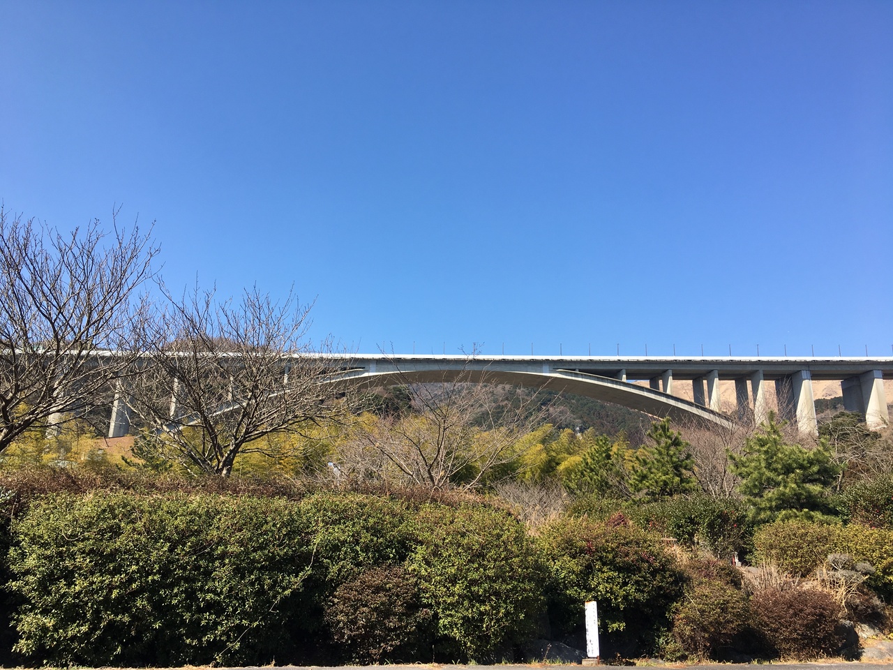 大分自動車道の湯布院と別府の間に架かる、橋長411メートルの大きなコンクリートアーチ橋です。別府温泉保養ランドに行った時に偶然見かけました。別府明礬橋が周りの自然に溶け込み、一体となった景色が綺麗でした。