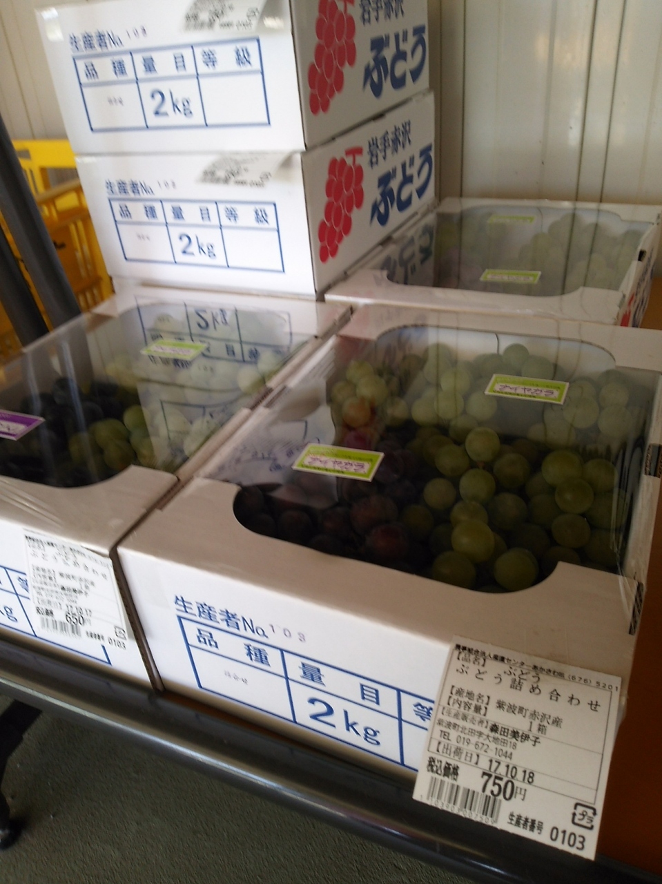 盛岡から遠野に行く途中で寄りました。大きな道の駅ではないけれど、フルーツがたくさんありました。ちょうどブドウの収穫時期だったので、いろいろな種類のブドウがあり、しかも安い。箱買いしました。フルーツ好きにはいいと思います。