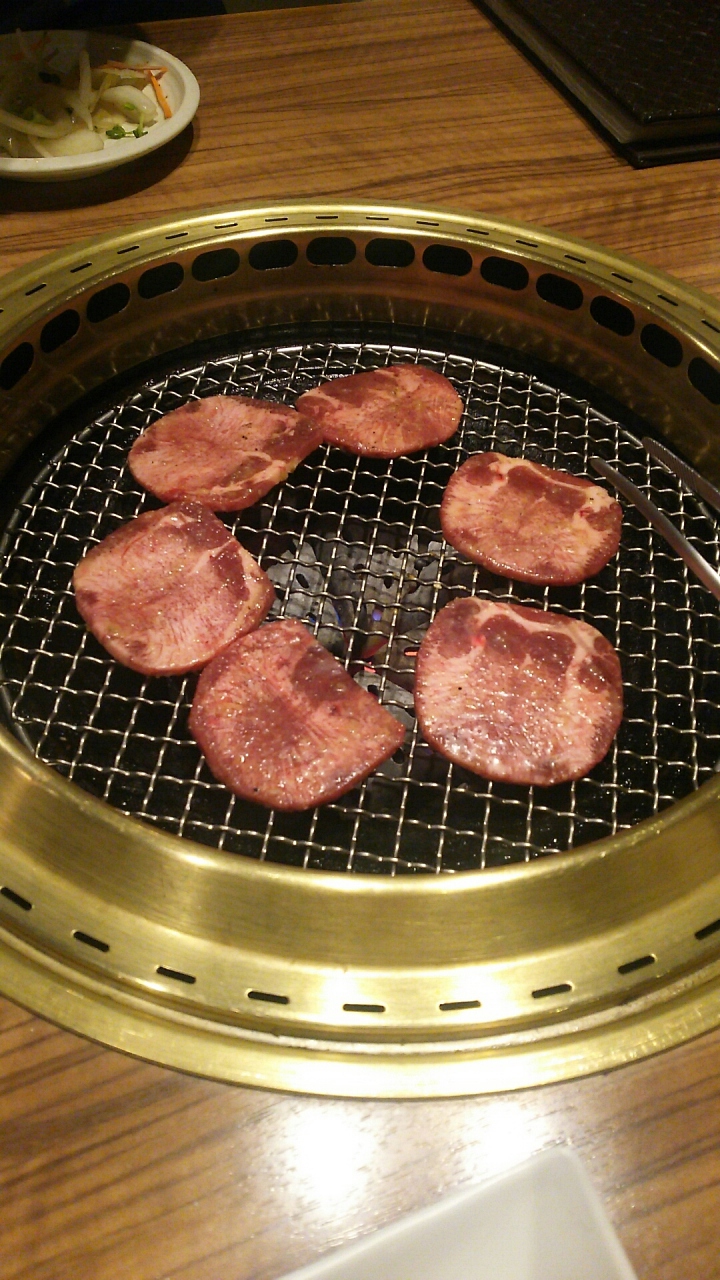 キムチの盛り合わせ、チョレギサラダ、タン、ロース、カルビ等のお肉、ユッケジャン等いただきました。