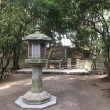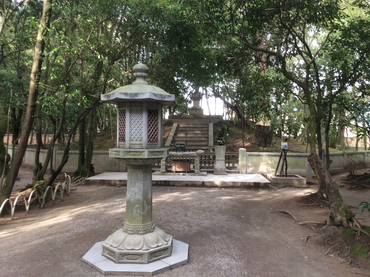 境内の奥まった場所にあり静粛な感じになりました。門があり入ると高い木の周りに苔が生えてみどり鮮やかでした。池に囲まれた立派な作りで、塀に囲まれて木々が生えて階段状になっていますが塀の外から見学になります。