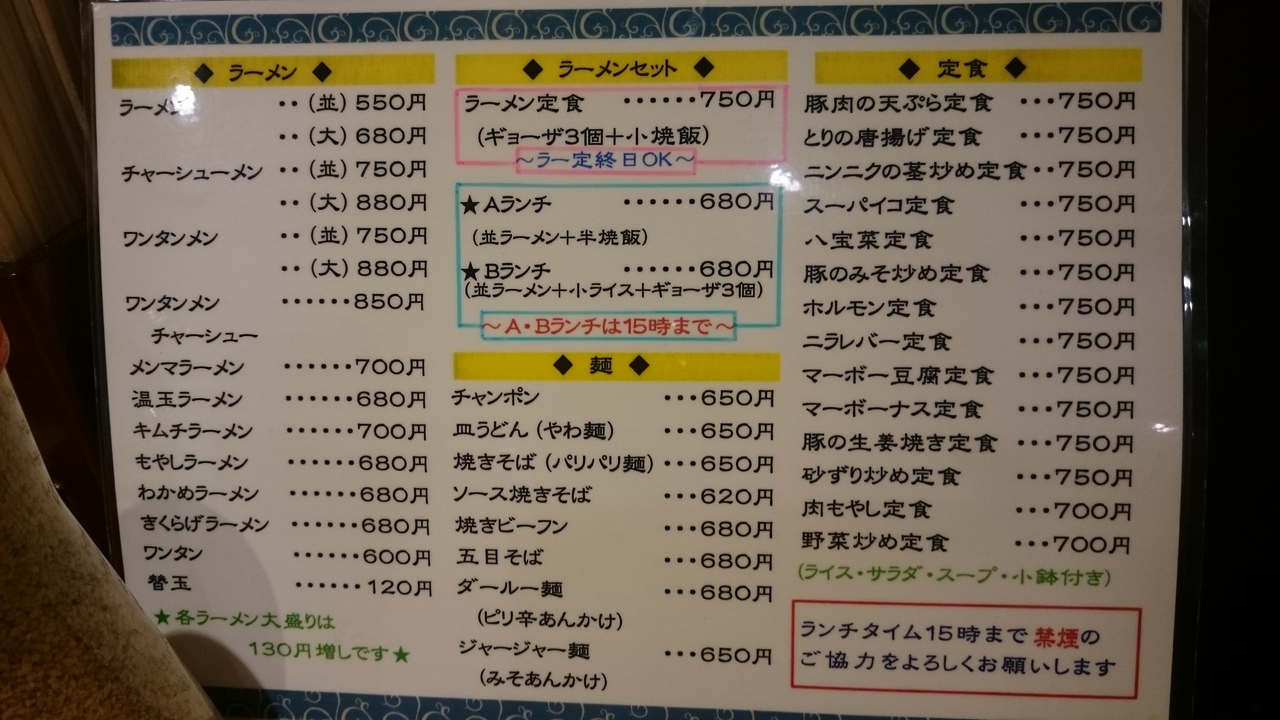 天神の中心地区から少し西に歩いたところにあります。博多ラーメン専門店ではなく、どちらかというと街の中華屋といった風情です。周辺オフィスのランチ客が多いですが、観光客にもおすすめです。ということで普段博多ラーメンを出す店では頼まない、ラーメン+チャーハン+餃子のオーダーにしました。うまい!そして安い!