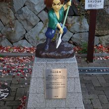 上田市内あちこちに、真田十勇士のモニュメント像が設置されています。アニメキャラクターの様な50cm程の大きさのモニュメント像が結構可愛いです。上田駅前には「真田十勇士を探しに行こう」マップが掲示されており、真田十勇士 モニュメントを探しながら上田市内を散策するのも面白いです。駅近くにあるのは穴山小助像。駅前ビル パレオに左手にあります。