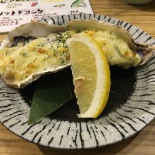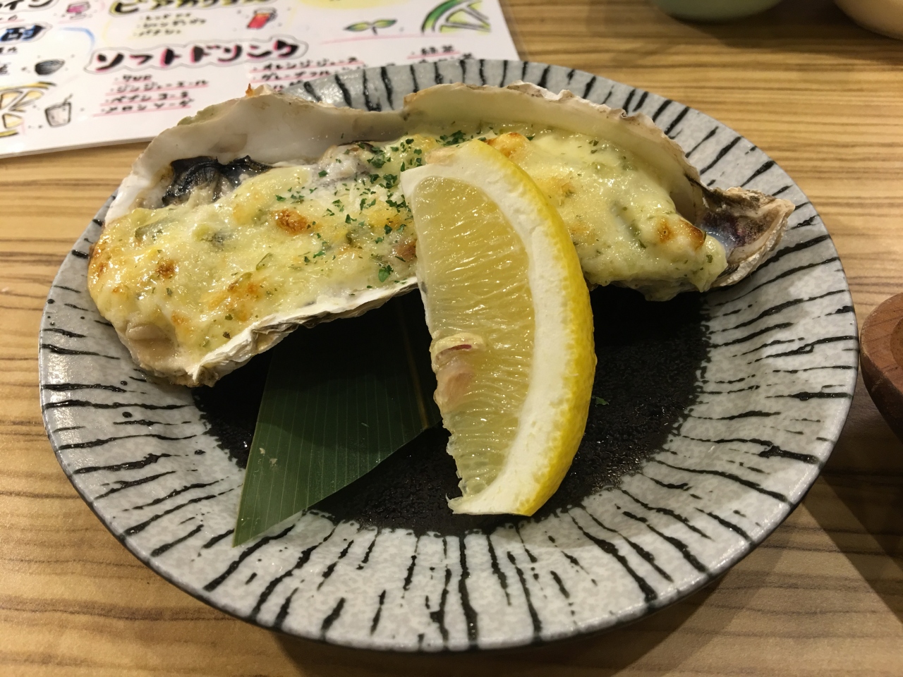 つまみに、キムチとたこわさと牡蠣のタルタル焼をいただきました。牡蠣のタルタル焼は見た目いかにも美味しそうでしたが、牡蠣の生臭さが気になって、あまり美味しくなかったです。