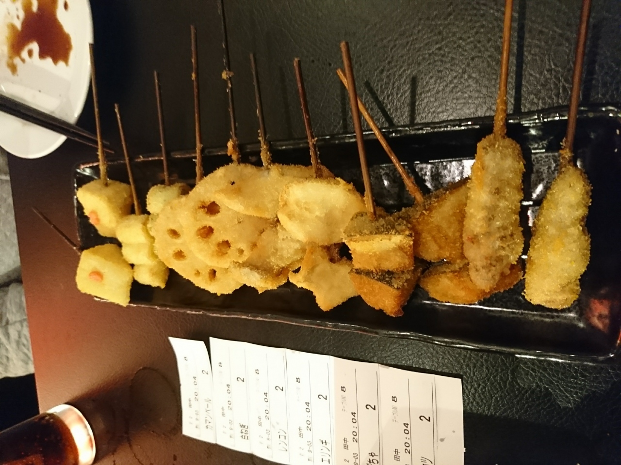店が若干狭いのが気になりましたし、予約した割にはスタッフの連携がいまいちでなかなか席へ案内してもらえない、WEB予約時のレディースセットが最初から省かれていた(何故かオーダーが通っていない)、オーダーを間違えて別のテーブルの注文品を持ってきたなどミスが目立ち、大丈夫かなとちょっと心配になりました。味はまあまあでした。肩ひじ張らない気軽な店としては良いと思います。便利だなと思ったのは、オーダー表(伝票控え)の通り皿に並べてもらえたので、どの串が何か一目でわかったので助かりました。