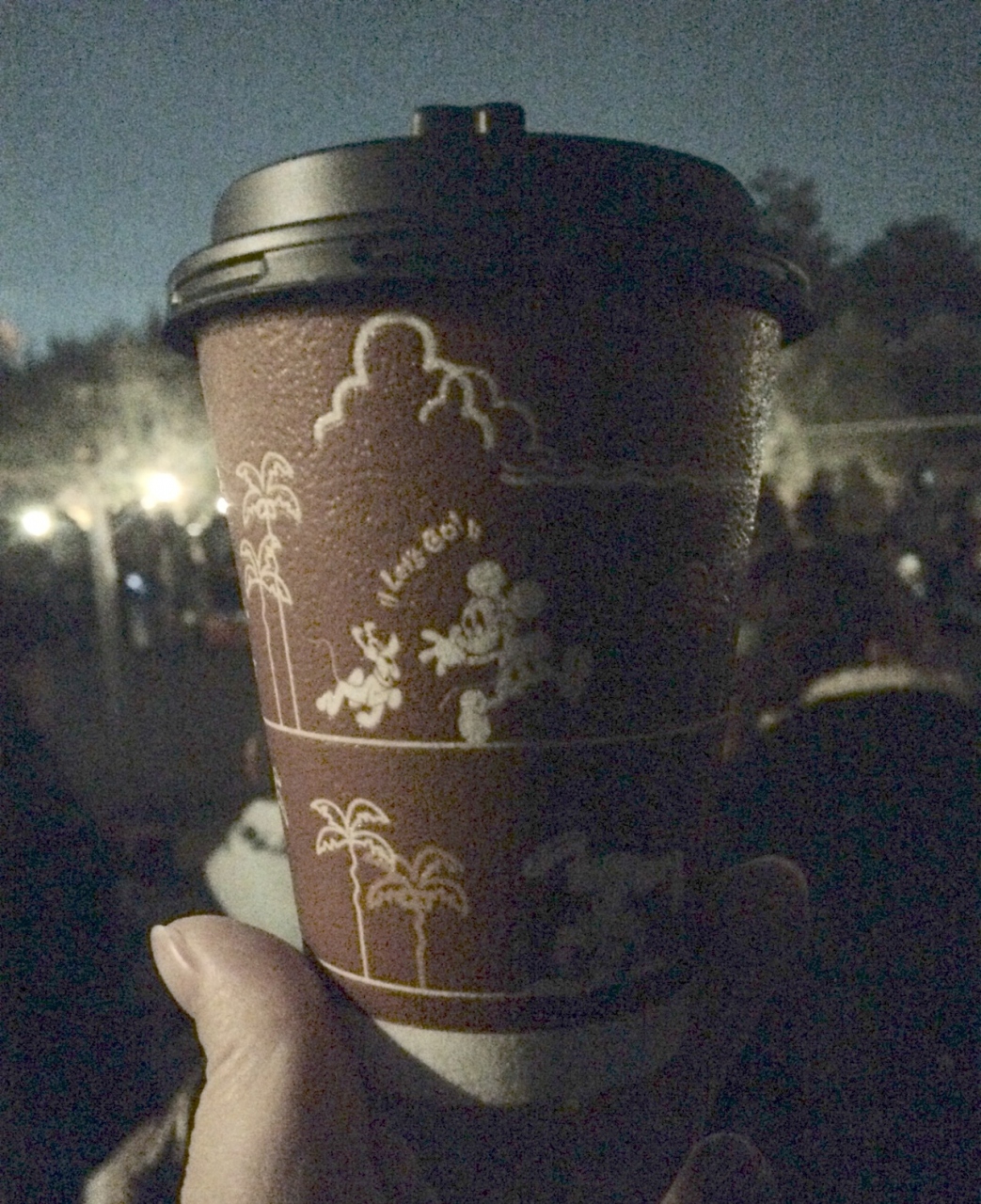 12月の夜はとても寒かったのですが、ホットコーヒーを飲みながらのんびり見物できました。