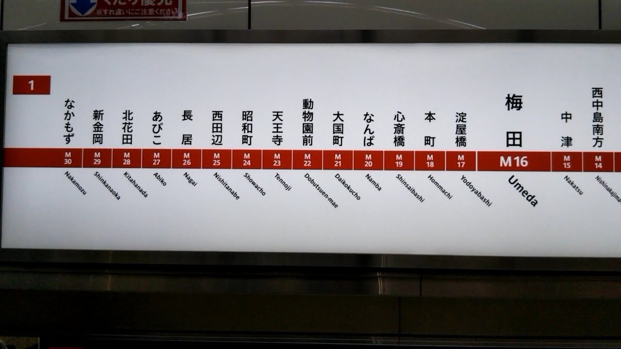 梅田から大阪駅方面に歩き大阪市営地下鉄乗り場を目指しました。御堂筋線こちらの案内看板を見て歩いて行ったのですが途中、少し迷いました。看板がわかりにくいです。地下鉄の料金は少し高め?な気がしましたが。もうすぐ、民営化になる?ようです。御堂筋線は大阪市の要の路線なのは駅名だけ見てもわかりました。私は「なんば」で下車しました。出口もややこしい感じがしました。
