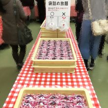 日帰りバスツアーで行きました。信玄餅の詰め放題でとても有名ですが、それ以外にも工場見学(案内人が付くわけではなく、ガラス越しに自由に見学しました)もできるし、もちろんお買い物も出来ました。信玄餅の詰め放題では小さなビニール袋が配られ、少しづつ伸ばしながら詰めましたが、破れたら取り替えてくれるようでした。時間制限はないのでゆっくり詰められ、なんとか20個詰め込みました。ツアー客で最高に詰めた人は28個だったそうです。
