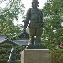 出雲大社四の鳥居手前参道左手側、社務所前にありました。日本神話「因幡の白うさぎ」で大国主大神がうさぎを助けた話の一場面のようで、うさぎの後ろ姿にほっこりとしました。他にも境内には、たくさんの愛くるしいうさぎの像が置いてありました。