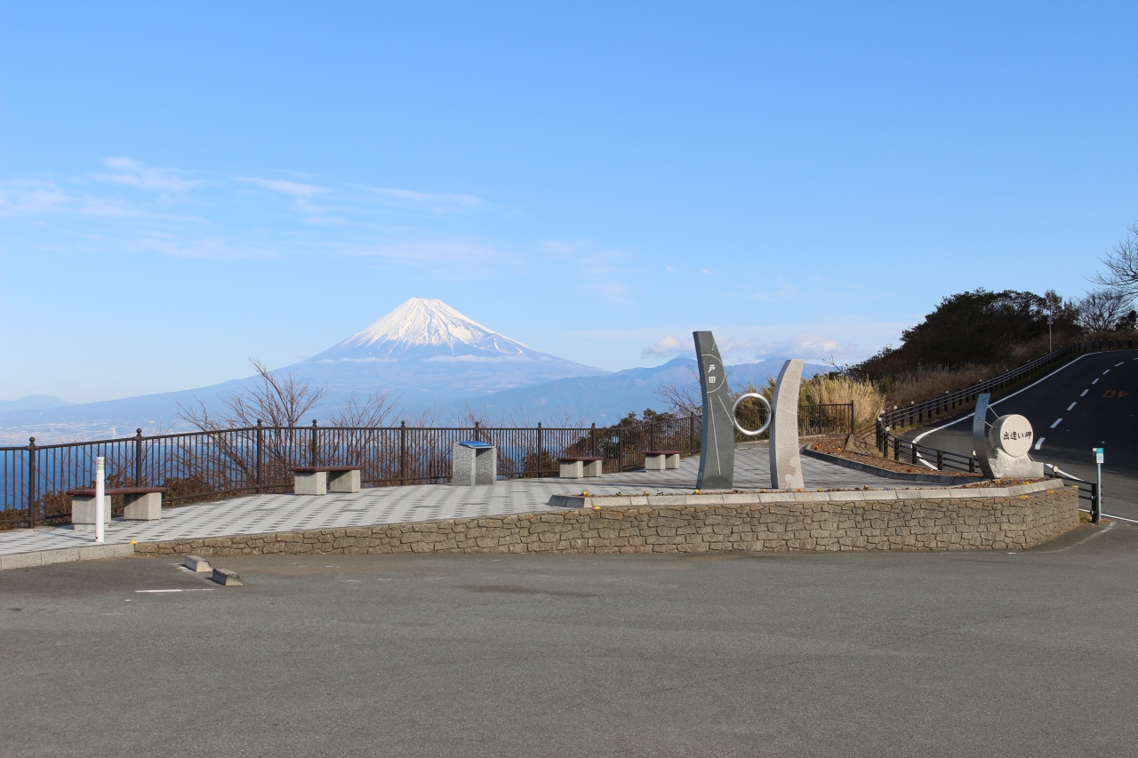 少し面白いモニュメントもあり、北に富士山、南に御浜岬を見ることができます。