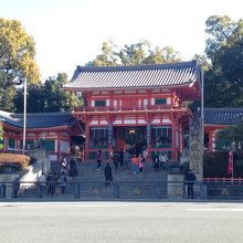 祇園のメインスポットで入り口の朱色の柱が目をひきます。中には無料で入れ、たくさんの神社をお参りすることができます。とにかく観光客が多い場所です。縁結びの神様でも有名です。奥に行くと円山公園があり、有名な【しだれ桜】もあります。