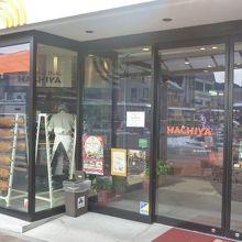 店頭に見せるバウムクーヘンにひかれて入店。駅前に立地しており、ロケーションが良い。