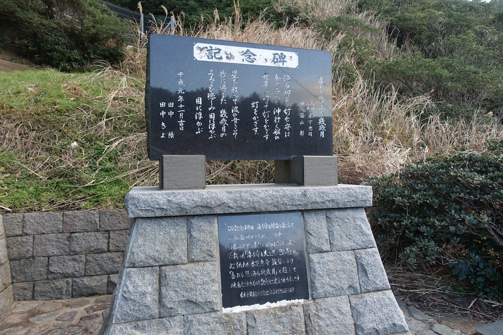 この映画は塩屋埼灯台長の妻の手記がきっかけで映画化されたことから、ここに記念碑が建てられたようです。映画の舞台として塩屋埼灯台は登場しませんが、ロケの一部はここで行われたとのこと。若山彰が歌った同名の主題歌の歌詞が彫りこまれています。