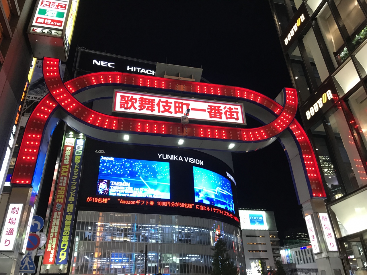 新宿西口の思い出横丁を散策したあとに、大ガード下を通って歌舞伎町に訪れました。