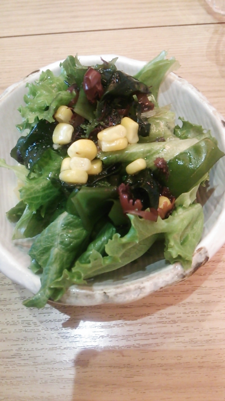 レタスを中心にわかめ、コーンが入るという内容でした。