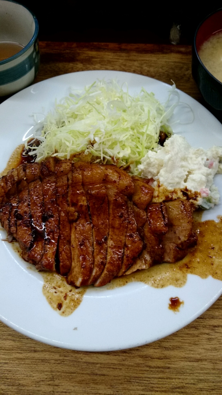 一品料理もあり組み合わせで飽きずに通えそう。お肉はいっけんしょっぱそうな見た目ですが食べるとそうでもないです。山盛りご飯に卓上のお漬け物はベストマッチ。紅しょうがも嬉しい昔ながらの通いたくなる定食屋さんです。