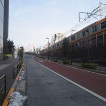 お茶の水駅から線路沿いに下った坂です。片側一車線の道路になっていますが、両側に程よい広さの歩道がきちんと整備されているので、徒歩でも利用しやすかたです。由来は鈴木淡路守の屋敷があったことからとか。坂の上に標識が建てられていて、そこに由来の説明が書いてあります。中央線の線路と並行してしていて、横にその中央線を見ることが出来ました。