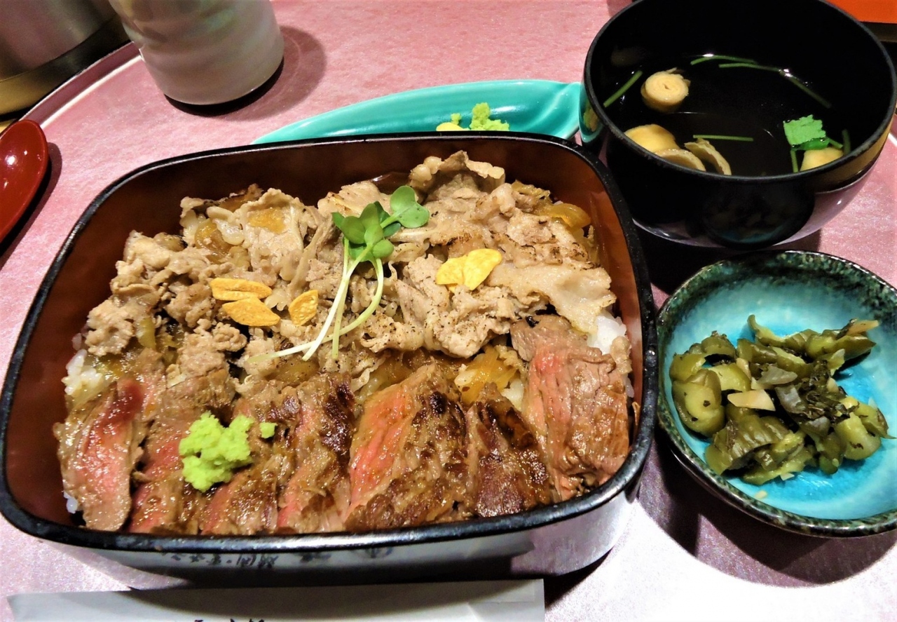 肉飯とビフテキ重の相盛りで、二色の味わいを一つのお重で楽しめました。