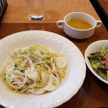 中板橋の商店街にあるイタリアンのお店。ディナーは少々値が張る感じがしたのでひとまずランチで訪問。パスタセットを注文。ミニサラダとワンドリンクのセットで千円ぽっきりとリーズナブルでした。クオリティも悪くなかったです。