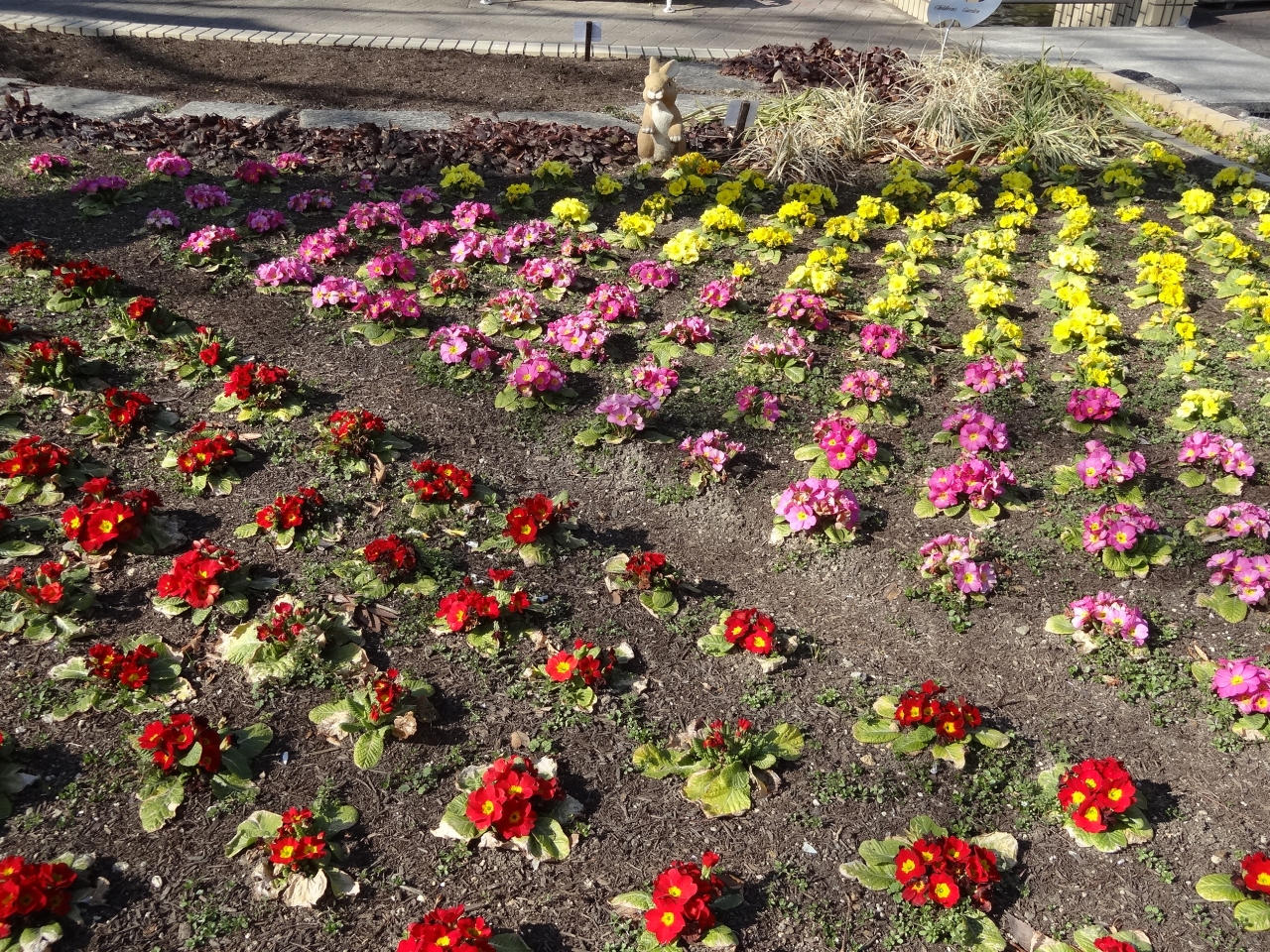 晴れて風の弱い平日にこの公園を訪れました。かなり広い公園で、噴水の近くで咲いているロウバイが甘い香りを放っていました。モニュメント百合の詩の近くに梅の木が立っていて、ピンクや白色のかわいい花を見つけました。春が近くなったなあと実感できます。おふけ池では餌を探してゴイサギやシラサギ・カモ・川鵜たちの動きが活発でした。30分ほどベンチに腰掛けて野鳥を見ながら小休憩。名古屋城の天守閣が池の奥に見えて、いい景色を造っていました。広場にはオランダ風車が野外展示されていて、ここはオランダ?と勘違いするほど。広場の中心には花の山という小さな丘があり、花を見ながら丘のてっぺんにあるベンチでまた小休憩。フラワープラザの建物内は現在一部改装工事中でした。野外にある花壇の花もカラフルに咲いていて、シンデレラのカボチャ馬車に乗って記念写真も撮影できるスポットもありました。春爛漫の時期にはさぞかし大勢の人で賑わうのではと予感がしました。