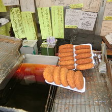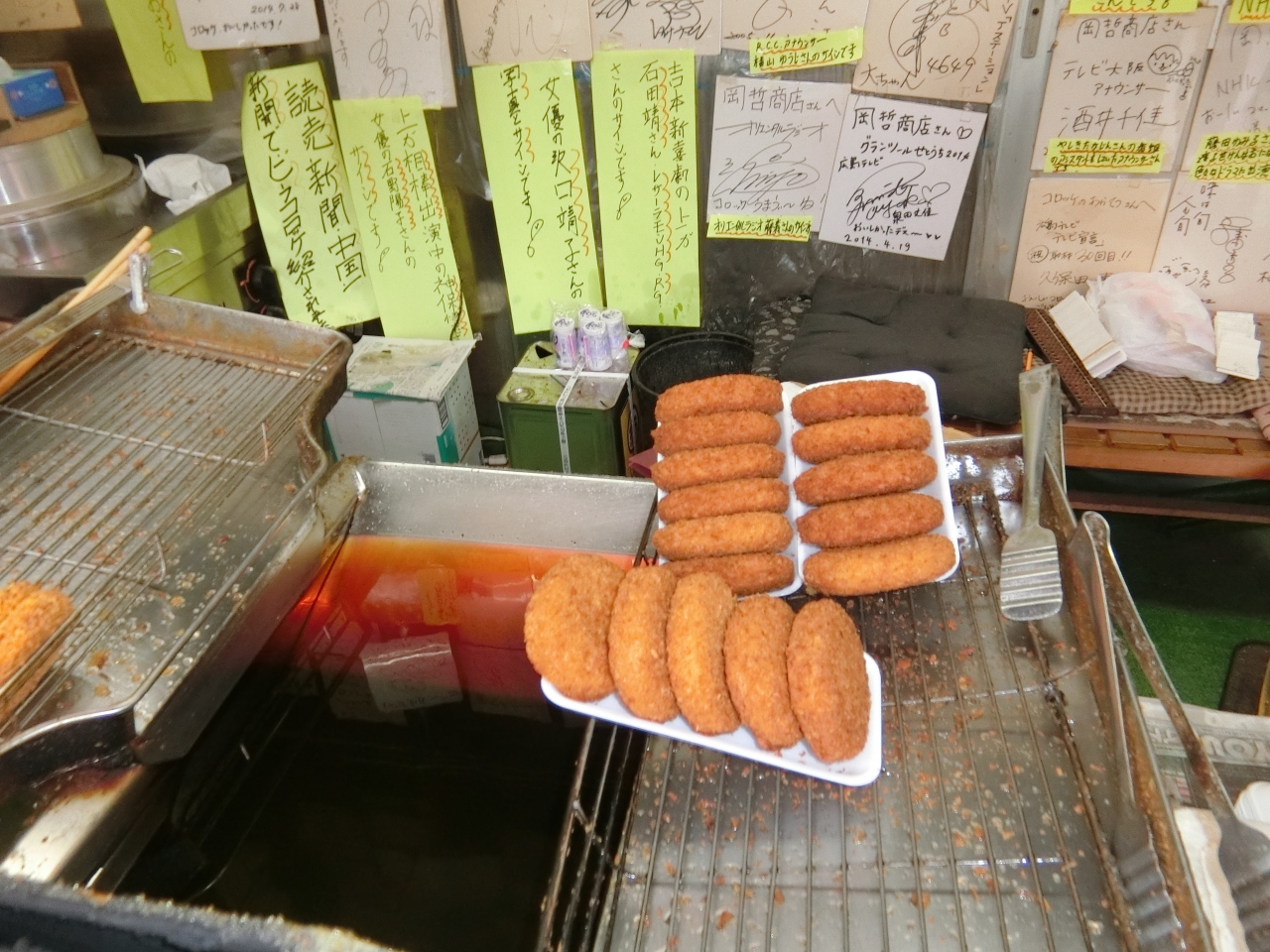 瀬戸田港から瀬戸田案内所に向かう途中、参道商店街にあります。コロッケが有名なお店で、おばあちゃんが1人で店番をしています。1つ買って食べました。熱々でサクサクしてとてもおいしかったです。値段も90円なので安いです。小腹がすいた時にはいいと思います。