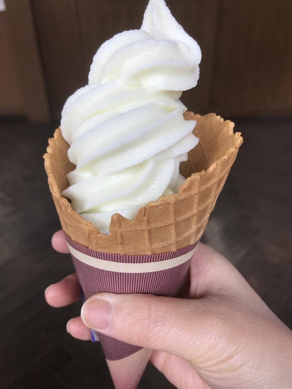 長野は松本パルコのそばに店舗を構える、和菓子の老舗の開運堂さんです。こちらのお店では、カウンターでコインを購入し、コインを投入すると機械がソフトクリームを提供してくれます。本日のソフトはメロンです。アッサリシャーベット風味です。