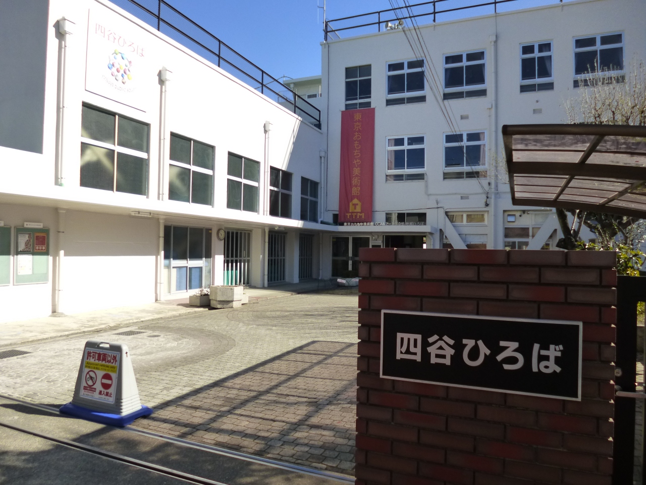 「東京おもちゃ美術館」は、四谷の裏通りにあります。かつて小学校だった建物を利用した「四谷ひろば」と呼ばれる施設の一画を占めています。