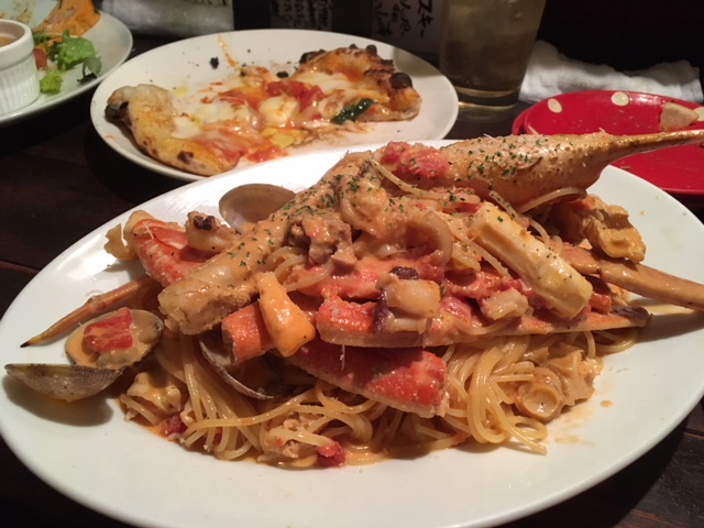 今日のお勧めのシーフード・パスタ。海老だったかと。