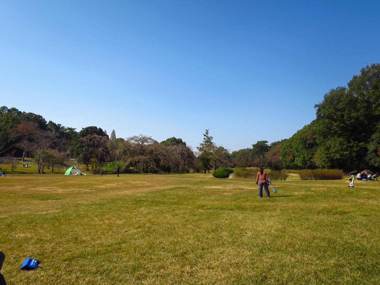 子供向け遊具は一か所に集中しているため、広大な芝生には遊具らしいものは見当たりません。だからこそ、ゆっくり散歩したり寝転がったり、またはフリスビーで遊んだりと、思い思いに楽しむことが出来ました。
