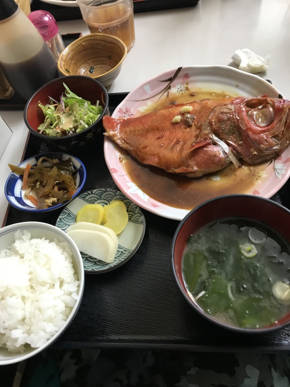 河津桜のシーズン中の土曜日ということもあり、こんでいました。11時オープンなのですが、15分過ぎに行ったら、もう行列でした。1時間くらい待ちました。50円プラスでサザエご飯に変更できるのですが、うりきれでした。アジフライ、金目の煮付け、お刺身を食べましたが、おいしかったです。