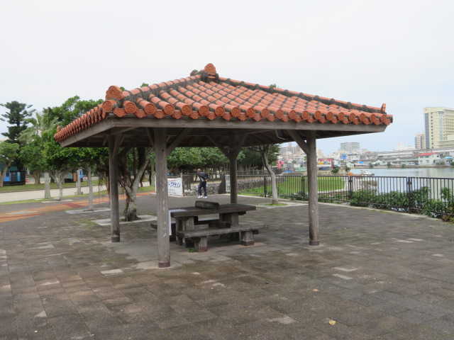 明治橋側入口からゆいレール奥武山公園駅まで広い公園内を散策しました、昭和34年(1959年)6月に沖縄初の運動公園として完成され、現在は多くの市民が利用しているようです、スタジアム、テニスコート、プール、陸上競技場、弓道場などの施設があり利用されてます、公園内にはジョギングコースや遊歩道があります、休憩舎や東屋もありますのでのんびり楽しめます、又、公園内に護国神社、世持神社、沖宮の3カ所の神社があります、散策中に参拝ができました、公園が広いので時間がかかりました。