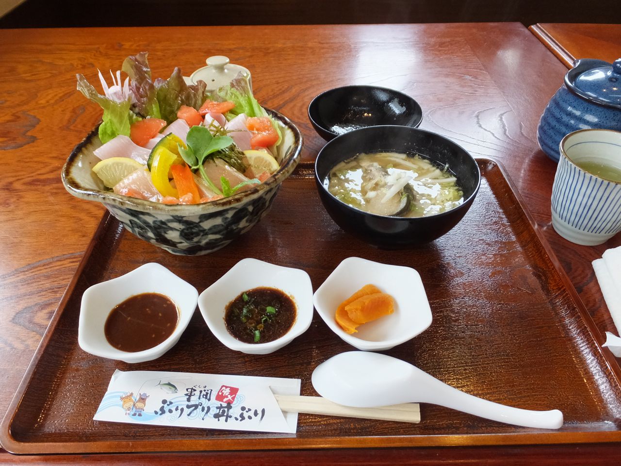 市内数店舗で始まったはずですが、いまや市街地ではこの店のみ。しかし、すごいおいしく量も多く楽しい丼でした。なにせ、ぶりがいっぱい。味付けの種類がいっぱい。なんと丼飯の底にまでサプライズのように入っているのです。もうこれだけで串間にきたかいがあったというくらい。絶対のおすすめです。
