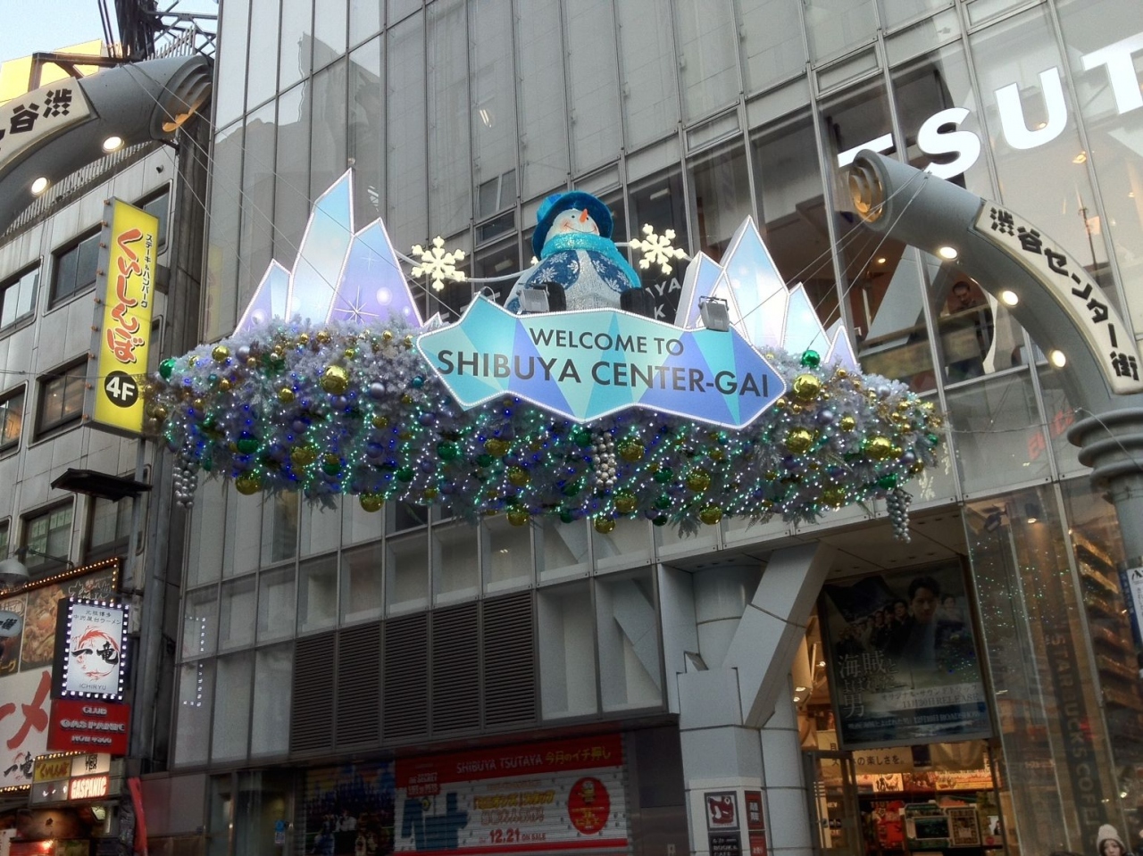 通りの両側に「渋谷センター街」と書かれたポールが立ち