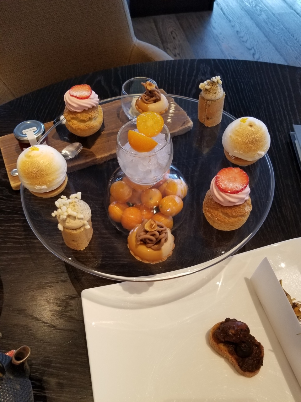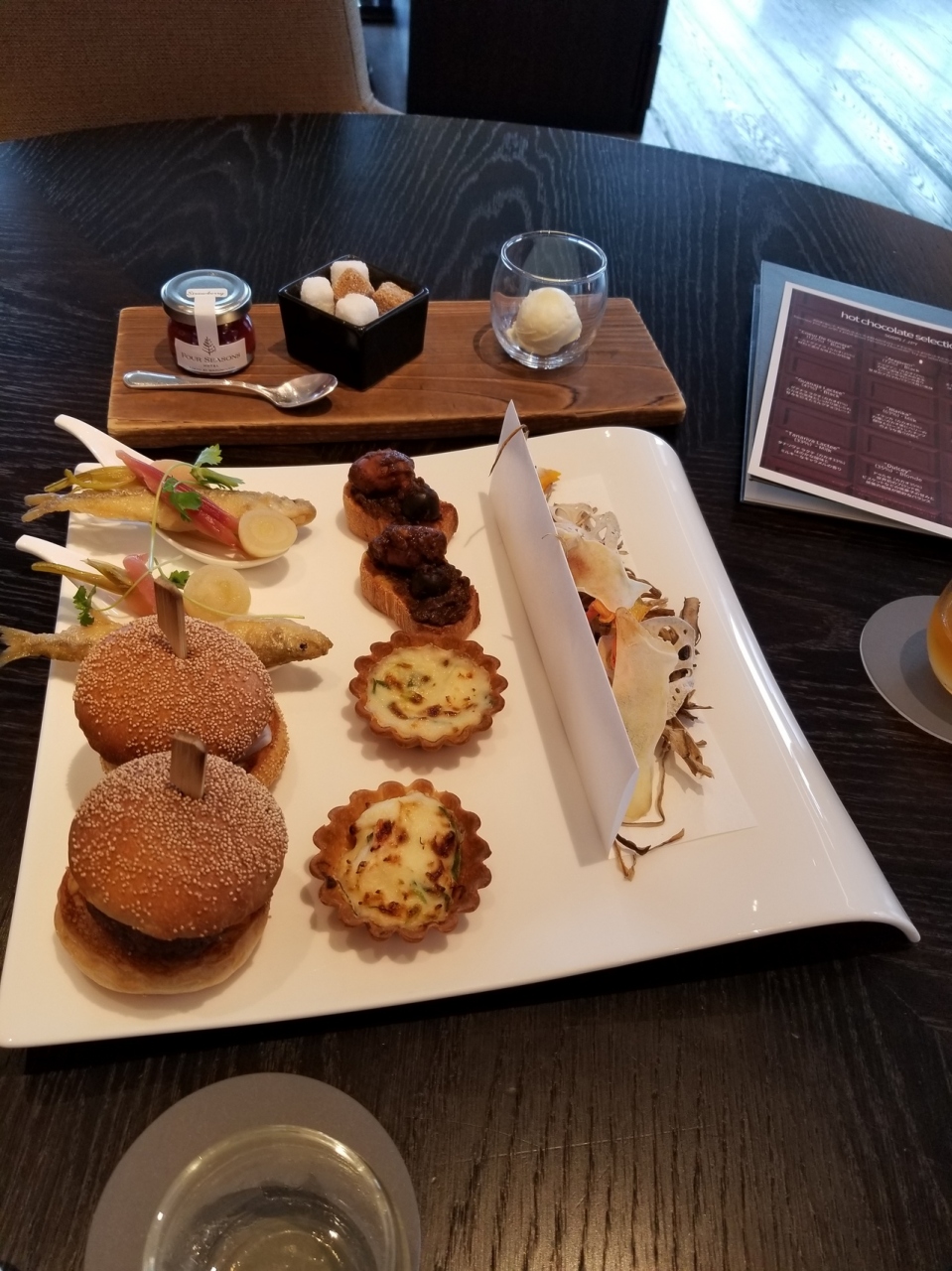 食事内容は想像していた内容とは少し違い、最初にサンドイッチとかはなく、わかさぎやイイダコを使った軽食が出てきました。どれを食べてもおいしく、飲み物も種類が豊富でおかわり自由でした。
