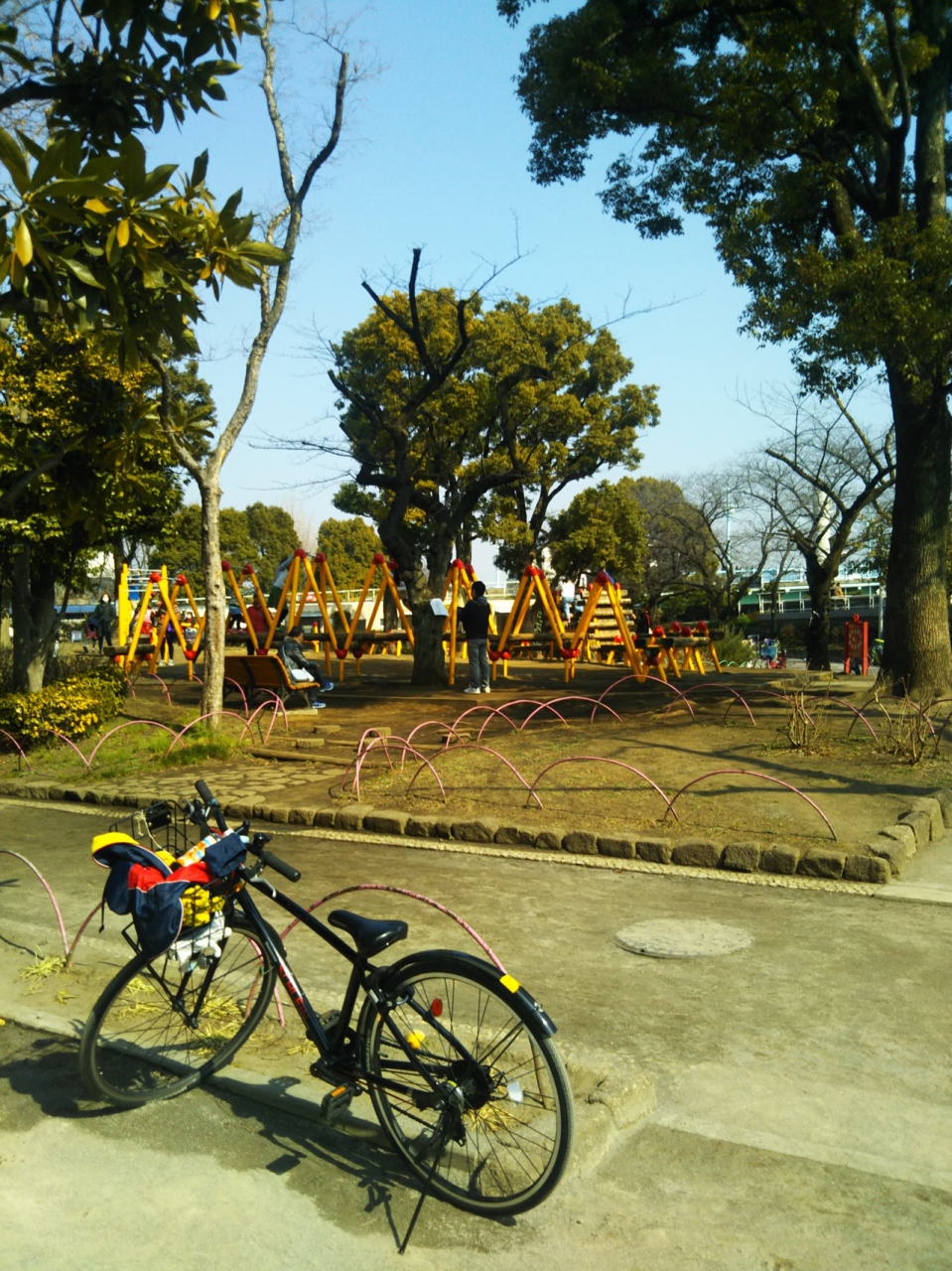 隅田川沿いにある公園です。言問通りから入っていけます。春は花見の名所としてたくさんの人が訪れます。2月末でしたが、梅がきれいに咲いていました。子ども向けにはアスレチック遊具やすべり台、ブランコもあります。