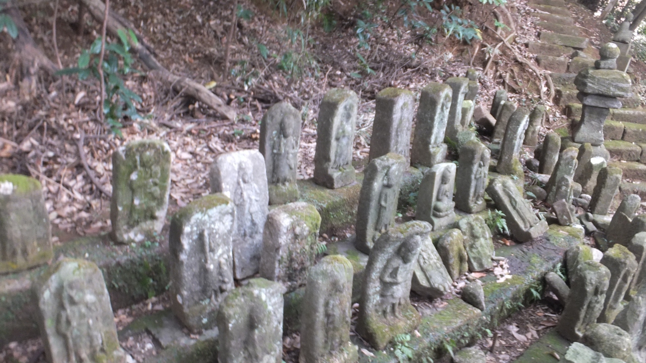 江戸時代後期に寺を復興した高雅愚伝(第九世)が発願したもので、上総国桜井村の石工・大野甚五郎英令が門弟27人と共に安永8年(1779年)より寛政10年(1798年)までの前後約21年の歳月をかけて彫ったもので、全部で約1,553体の石仏があります。百躰観音、日牌堂、聖徳太子、百躰不動などに分かれています。急な坂で階段歩くと足がパンパンになります。