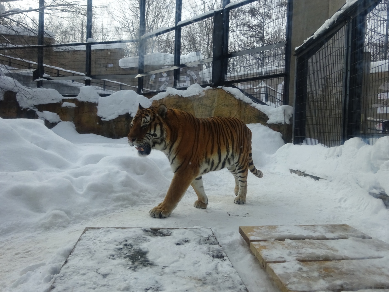 アムール虎、アムール豹、ユキヒョウ、ライオン、エゾヒグマがいますが、暖かい国の動物たちは冬場は外に出てきませんでした。