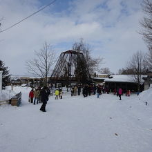山の斜面を利用して造られた園内は、冬場は地面が凍結していて、とても滑りやすく注意が必要です。