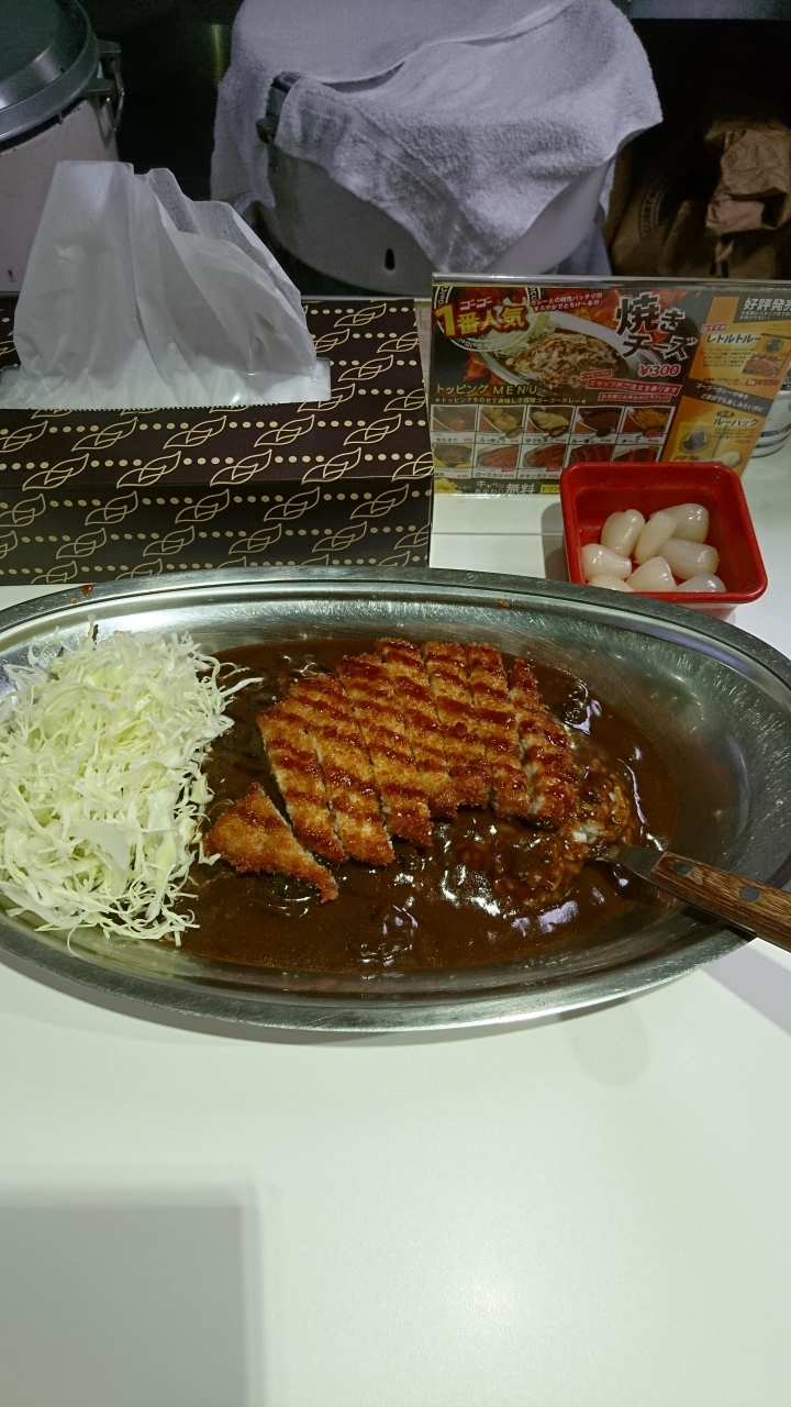 代々木駅から徒歩すぐのゴーゴーカレーでランチを食べました。入口の食券機でロースカツカレーの普通盛りを注文して、しばらく待つと揚げたてのロースかつが乗ったカツカレーが出来上がりました。独特の黒いとろみがあるカレールーとキャベツを食べながら、揚げたてのロースかつを食べました。ボリュームもありとてもおススメです。