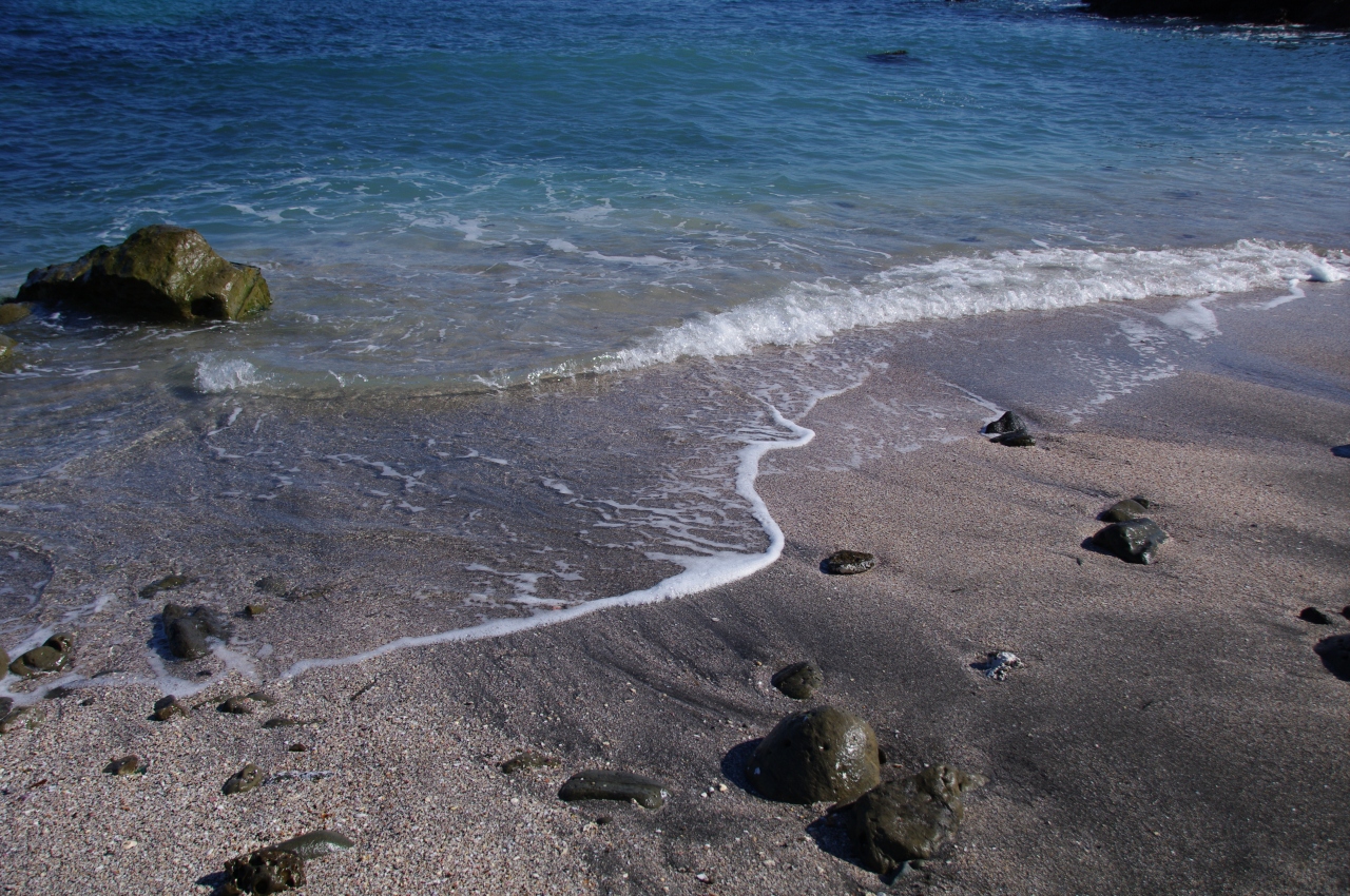 剱埼灯台の入口へ戻り、東側の海沿いへ下りました。とても綺麗な海でした。水面だけ見ると、南国のリゾートの海のようでした。