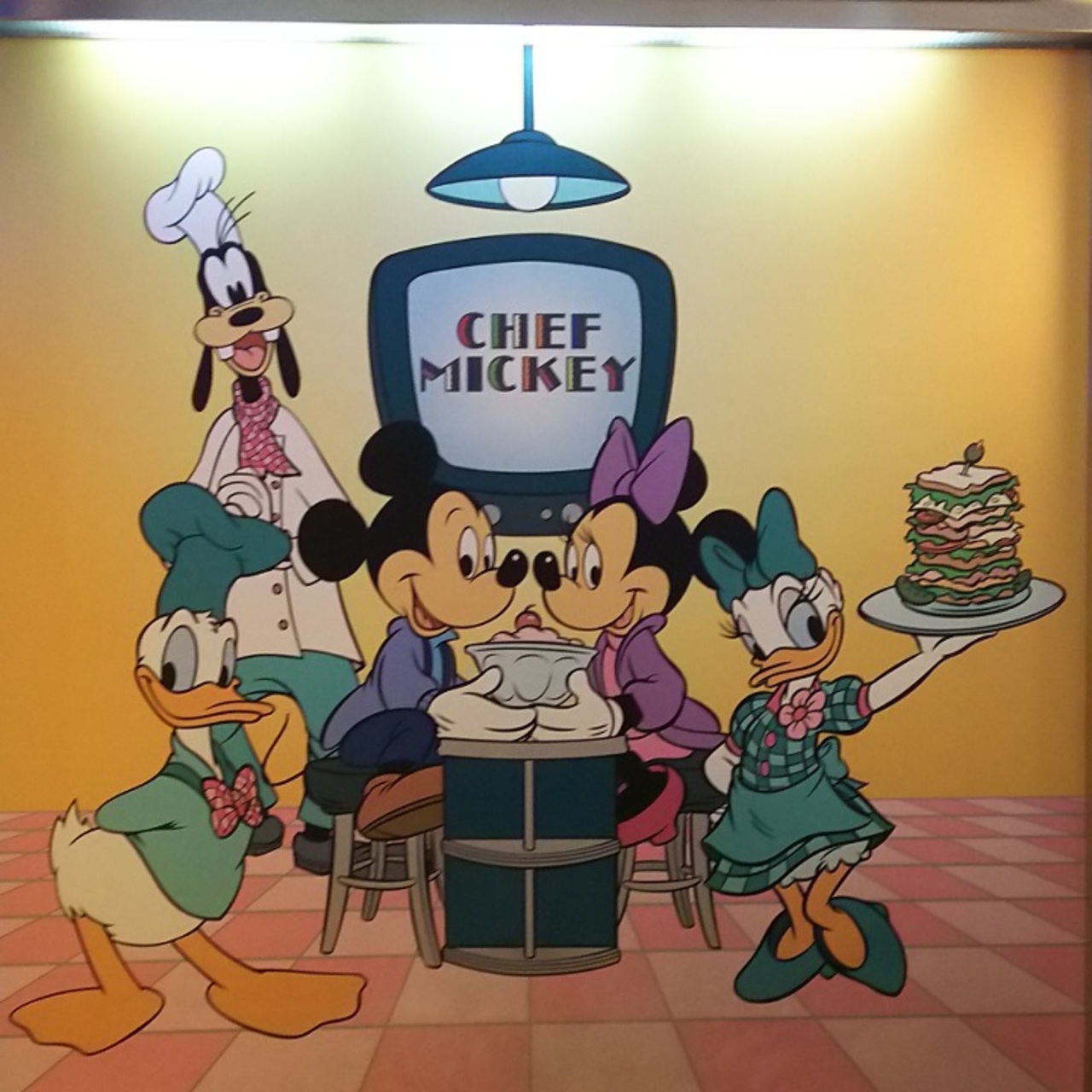 再訪したところ以前と少しシステムが変わっていました。ミッキー、ミニー、ドナルド、デイジーが次々に席にやってくるのですが、「次にミッキーが来るので準備をお願いします」とキャストさんが言ってくれるようになり、だいぶ料理を取りに行くタイミングがつかみやすくなりました。ディナーの時間は90分に1回の間隔でシェフ・ミッキーのテーマソングが流れます。みんなで手拍子をするので、Youtubeなどで予習していくと楽しめると思います。
