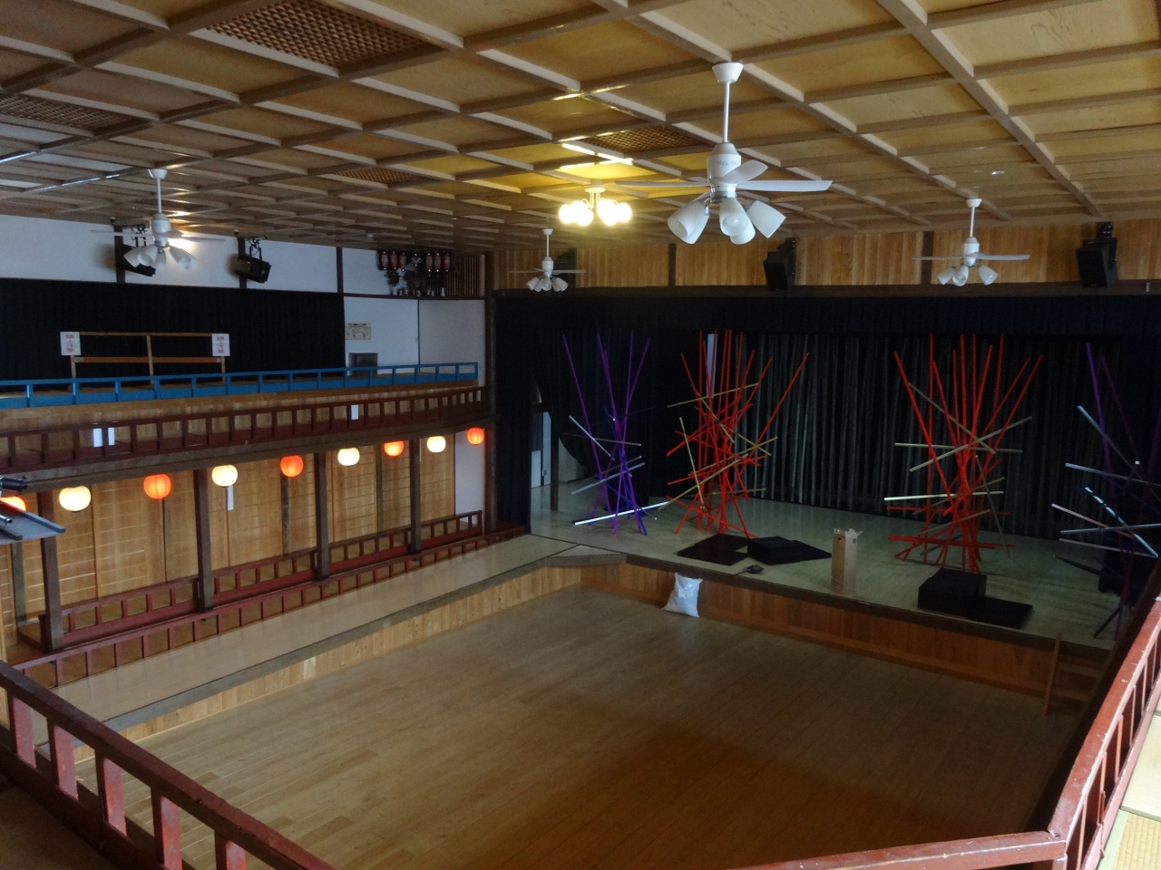 レトロな芝居小屋です。うだつの街並みから歩いてすぐの距離です。訪問時は舞台にアートのようなものが展示されていました。外壁の水色が昭和レトロを感じさせます。公演があるときに合わせて訪問するのも面白そうです。