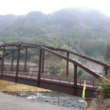 JR隼人駅前からバスで約15分。山あいの川にそって旅館が点在しています。昔は湯治客向けの宿泊施設だった旅館はレトロなおもむき。川からは湯気が立ち上る箇所があり、山には霧がかかり、風情溢れる静かな温泉地です。