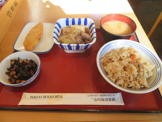 東川口のメインの通りけやき通り沿いにのさいたま市との境付近にある食堂です、車で来る人が多いようで駐車場がある程度あります、最近多くあるセルフサービスの食堂で好みの料理を選んでトレイにのせて、みそ汁・ごはんを注文して会計をするシステムです、良かったのは牛すきを温かい物に変えてくれたこと、ご飯が混ぜご飯の季節ご飯を食べることが出来たことです、14時頃行ったのでゆっくり食べることが出来ました。