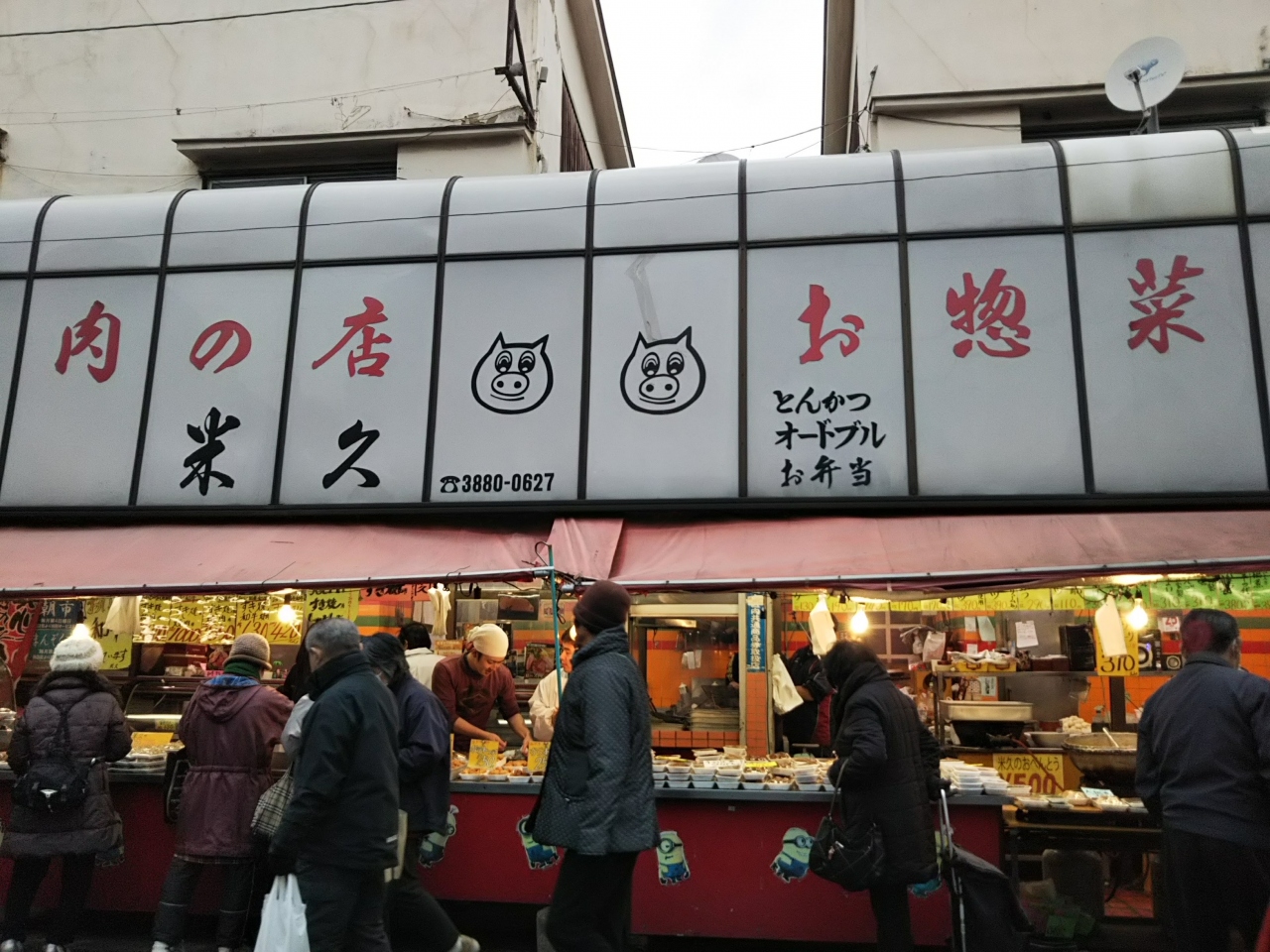 旦那家族のゆかりの商店街にある旦那家族のゆかりの人々が経営しているお肉屋さん。旦那家族はここのモツ煮の大ファンで冬になると時折訪れてる。今やTXが開通して駅そばになりじゃっかんメジャーな商店街になってるけど、かなり昔からある老舗で、安くはないけど、どのおかずを買っても間違いないおいしさ。