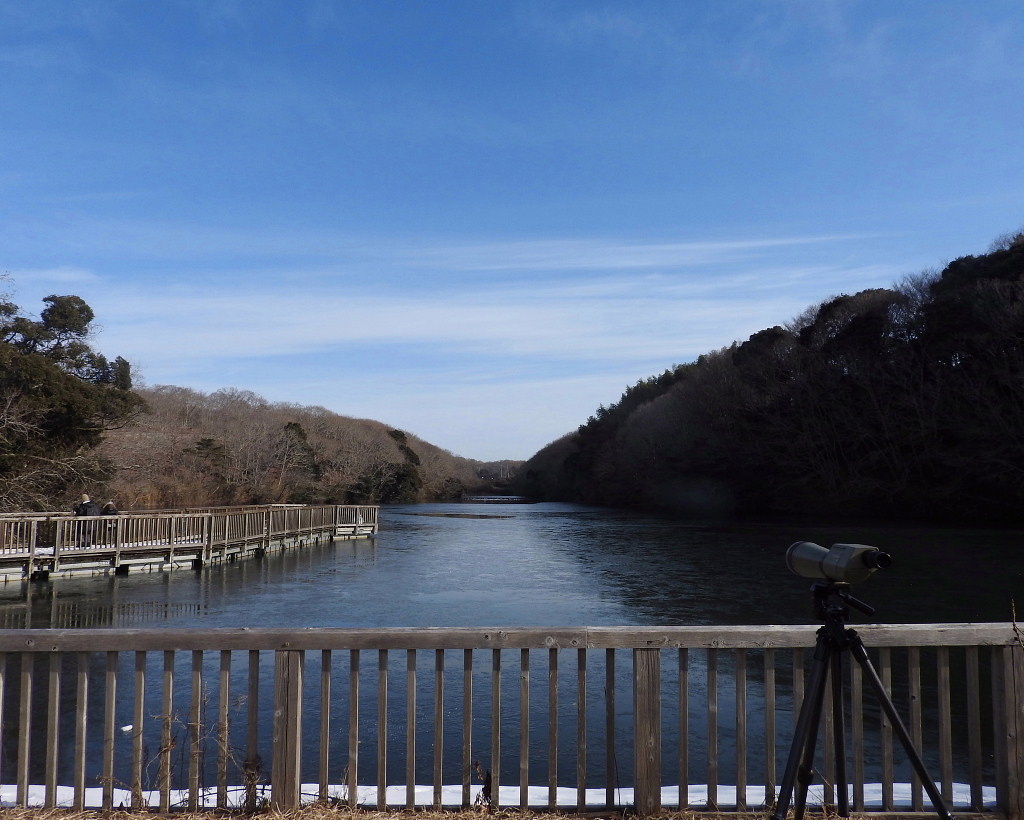 大膳池は、水郷県民の森の中にある池ですが、折からの寒波で水面が凍っていました。